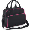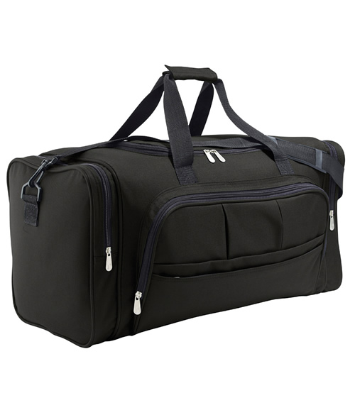 Detachable adjustable shoulder strap. Self fabric carry handles. Internal mesh pocket. Zipped main compartment. Zipped front pocket. Internal baseboard. Capacity 15 litres.