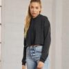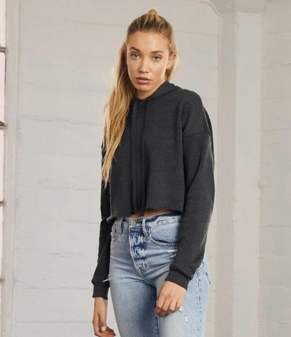 Brushed back fleece. Drop shoulder style. Unlined hood. Self colour drawcord. Cropped length. Ribbed cuffs. Unfinished raw hem. Tear out label.