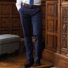 Slim fit. Stretch waistband. Flat front. Belt loops. Zip fly with button over. Two side pockets. Rear jetted pockets. Media pocket.