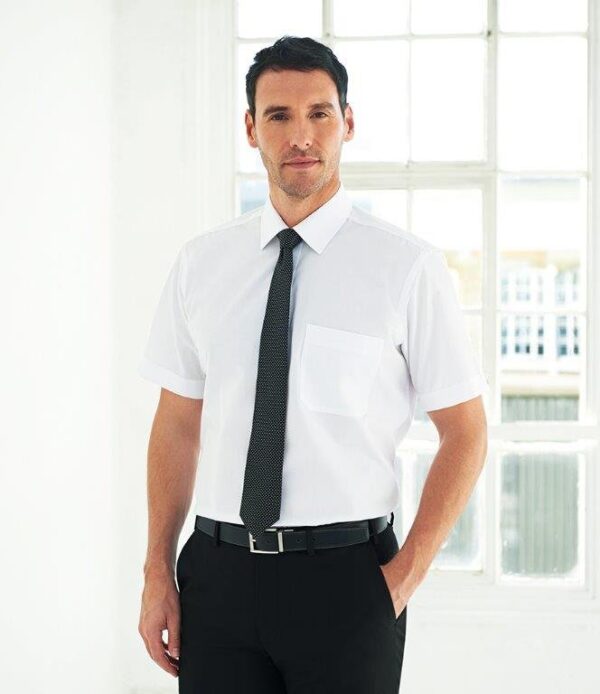Easy iron fabric. Classic fit. Classic collar. Left chest pocket. Single yoke. Curved hem.