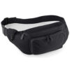 Adjustable webbing belt. Four zip pockets. Key fob. Capacity 2 litres.