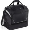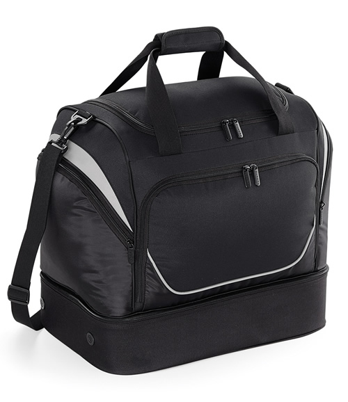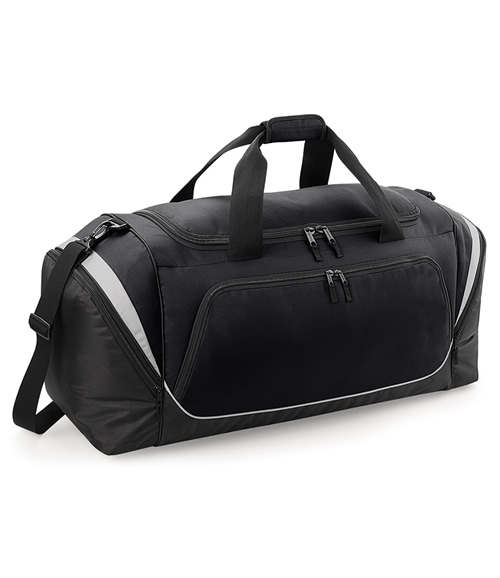 Padded hand grip. Detachable, padded adjustable shoulder strap. Compact size to fit most lockers. Structured, ventilated base compartment. Zipped front pocket designed for easy decoration. Internal valuables pocket. Internal mesh pockets. Zipped end pockets. Protective base feet. Capacity 40 litres. Matches QS255, QS270, QS277, QS288.