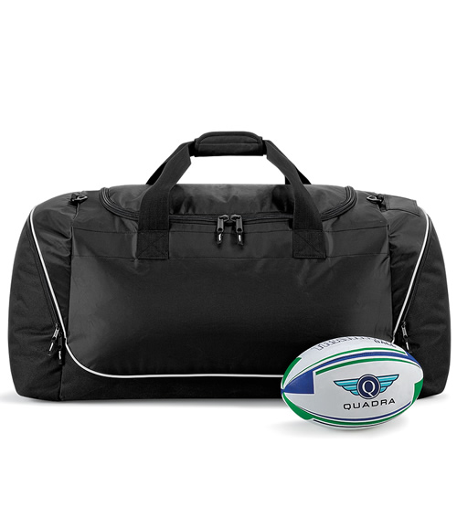 Detachable adjustable shoulder strap with pad. Kit proof large zip on main compartment. Two end pockets. Heavy duty webbing handles. Rugged construction. Concealed name card holder. Protective base feet. Capacity 110 litres.